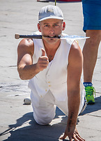 The publicly praised Canadian; DynaMike - nowadays residing in Denmark - usually thrills his audience leaving them open- mouthed, but shortly after has them in stitches of laughter. Before his humour captivates us in new ways. Like when he rides a very high unicycle whilst juggling chain saws, sharpened machetes or even children! He is also a stuntman in addition to his street art. He has performed more than 5,000 shows across the globe since 1996, and is one if the most professional entertainers that you can see today.