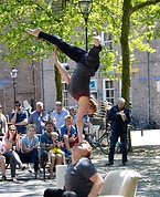 Together, they have performed their hand to hand act and foot juggling performance in many traditional circus, variety shows, street performances and theatre production in Europe. The versatility of both artists helped them in the creation of their own 35 minutes contemporary circus street show called “SUHDE”.